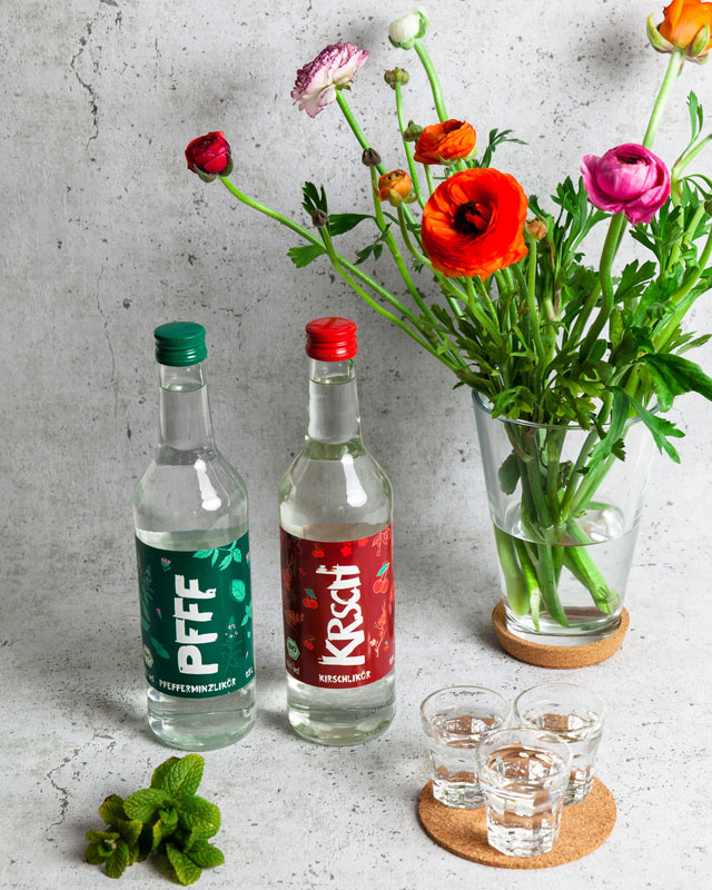 PFFF Bio Pfefferminzlikör und KRSCH Bio Kirschlikör: