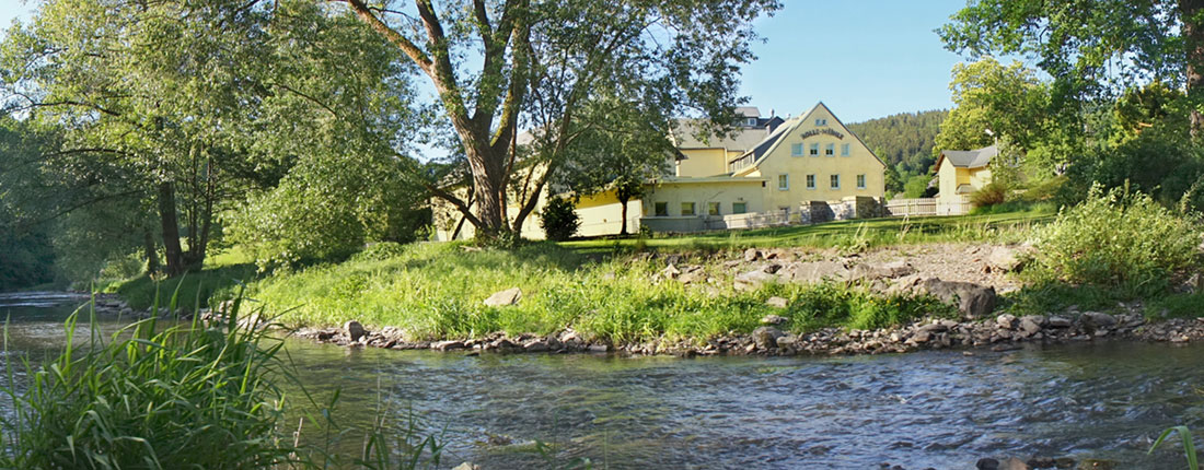 Unsere Mühle hat ihre Wurzeln im 16. Jahrhundert. Die Arbeit der Müller ist seit jeher geprägt von der Liebe zum Handwerk, von Erfahrung, Fleiß und Können. So wurde die traditionelle Handwerksmühle zu einem zeitgemäßen Lebensmittelbetrieb. Erhalten hat sich dabei die unmittelbare Verbundenheit zur Natur. Dank eines Kleinwasserkraftwerkes können wir die Mühle komplett mit sauberem Strom aus regenerativer Energie betreiben. Eine Fischtreppe ermöglicht es den Flussbewohnern ungehindert unser Wehr zu überwinden.