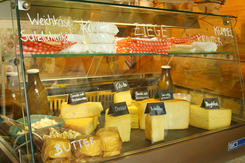 • Schnittkäse (Gouda, Gouda mit Bockshornklee, Gouda mit Schabzigerklee/ Kümmel/italienischen Kräutern, geräucherter Gouda, Tilsiter, Butterkäse, Ziegenbutterkäse)
