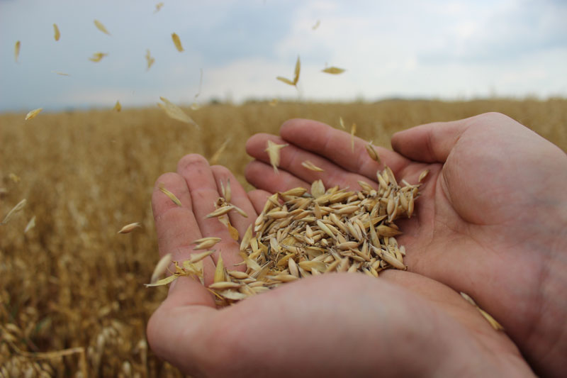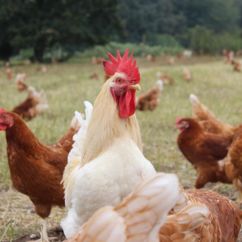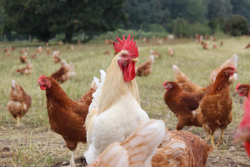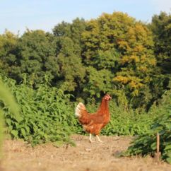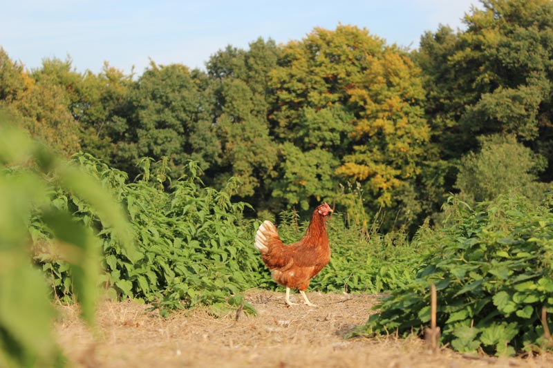 Auf unseren Äckern wächst das Futter für unsere Hühner, deren Einstreu als organischer Dünger zurück auf unsere Felder und Obstanlagen kommt. Den Baumschnitt häckseln wir, er hält den Auslauf der Hennen sauber und trocken.