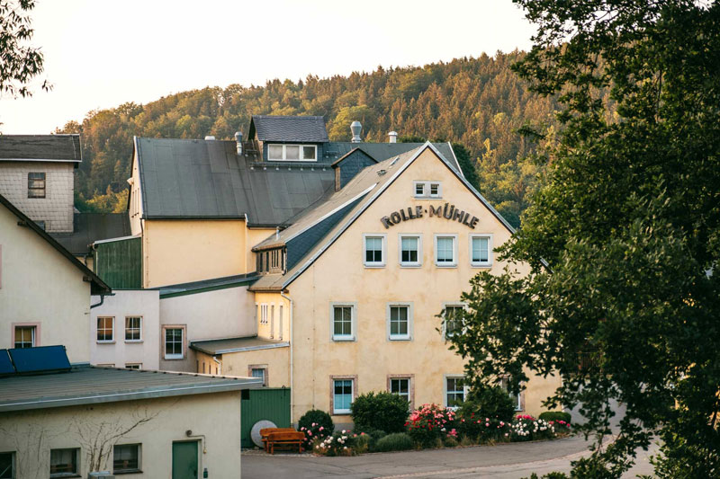 Unsere Mühle hat ihre Wurzeln im 16. Jahrhundert. Die Arbeit der Müller ist seit jeher geprägt von der Liebe zum Handwerk, von Erfahrung, Fleiß und Können. So wurde die traditionelle Handwerksmühle zu einem zeitgemäßen Lebensmittelbetrieb. Erhalten hat sich dabei die unmittelbare Verbundenheit zur Natur. Dank eines Kleinwasserkraftwerkes können wir die Mühle komplett mit sauberem Strom aus regenerativer Energie betreiben. Eine Fischtreppe ermöglicht es den Flussbewohnern ungehindert unser Wehr zu überwinden.