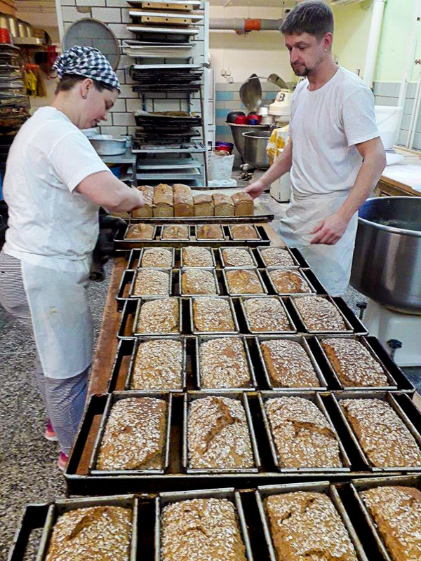 2001 war das Jahr, in dem wir uns sagten: Wenn Bio, dann konsequent und richteten unsere Bäckerei nach den demeter-Richtlinien aus. Mittlerweile sind es ca. 25 Sorten demeter-Vollkornbrot, ca. 10 Sorten Bio-Vollkornbrötchen, Kuchen und Gebäck, auch Torten in Bio- bzw. Demeterqualität.