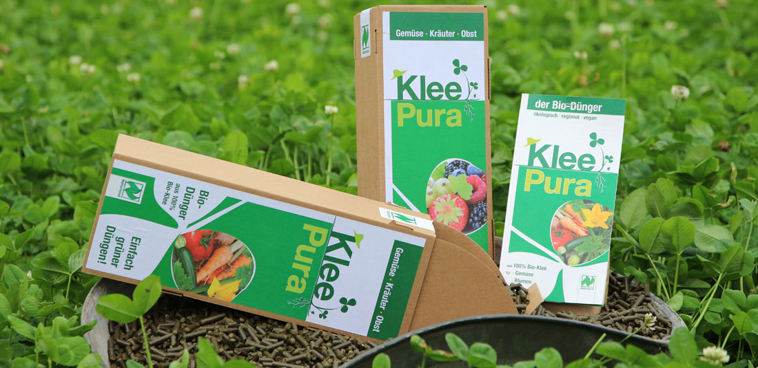 Mit KleePura bringen wir nicht nur ein regionales Produkt mitten aus Dresden in die VG-Märkte, sondern auch den 1. und einzigen zertifizierten BioDünger, welcher an der HTW-Dresden (Professur Ökologischer Landbau) entwickelt wurde. Gemeinsam mit dem Anbauverband Naturland verändern wir ökologisches Gärtnern von innen heraus und definieren neu, was es heißt, auch als (Hobby-)Gärtner*in echt bio zu sein: Ausschließlich Bio-Klee wird in unserer Manufaktur in Dresden-Niedersedlitz zu KleePura Düngepellets weiterverarbeitet und versorgt als natürliches, bio-veganes Düngemittel Gemüse, Kräuter, Obst und Blumen mit allen Nährstoffen, die für nachhaltig gesundes Pflanzenwachstum entscheidend sind. Gleichzeitig geht unser Ansatz aber auch weit über die Grenzen des eigenen Gartenbeets hinaus: KleePura heißt für uns nicht nur unverfälschtes Bio-Gärtnern, sondern steht auch für geschlossene Kreislaufwirtschaft, Nährstoffrückführung und ganzheitlichen Erhalt der Fruchtbarkeit unserer Böden – im eigenen Garten, auf unseren Kleeflächen, hier und heute, aber auch für kommende Generationen.