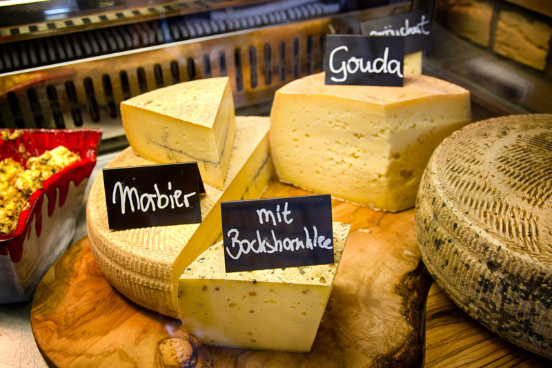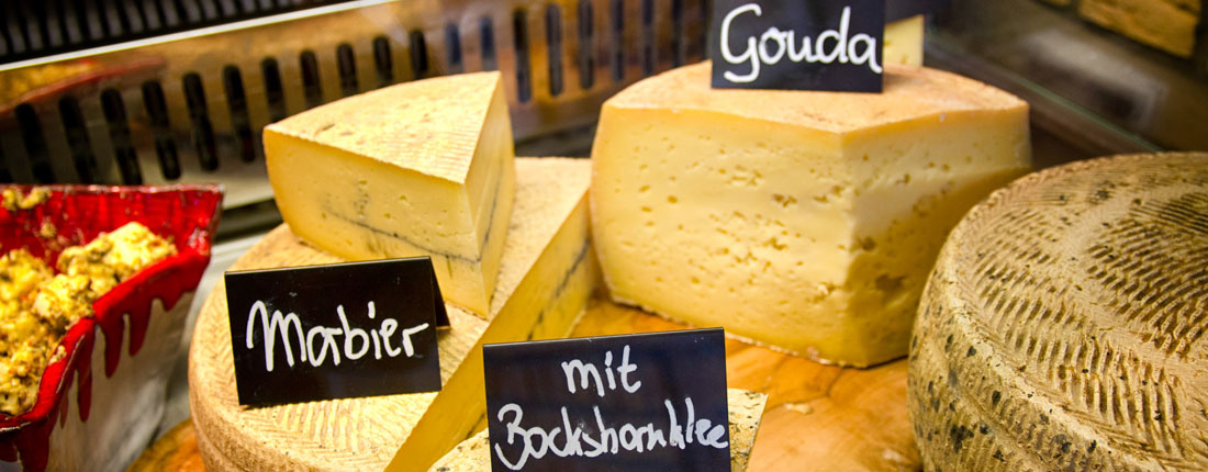 • Schnittkäse (Gouda, Gouda mit Bockshornklee, Gouda mit Schabzigerklee/ Kümmel/italienischen Kräutern, geräucherter Gouda, Tilsiter, Butterkäse, Ziegenbutterkäse)