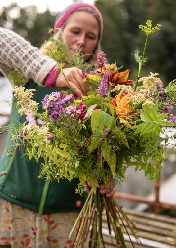 Wir möchten einen Garten, der mehr ist als eine Aneinanderreihung perfekter Schönheit. Wir wollen einen Garten, der ein zu Hause ist und in dem sich alle wohlfühlen. Daher wirtschaften wir mit der Natur entsprechend der Jahreszeiten. BIO ist für uns obligatorisch. Wir düngen unsere Beete ausschließlich mit gärtnereieigenem Kompost und Pflanzenjauchen/-brühen/-tees. Unsere Topfkulturen erhalten Hornspäne/-gries als Wegzehrung mit und wir verwenden zudem torfarme Bioerden. Im Sommergarten bauen wir für euch eine liebevoll ausgewählte Vielzahl an bienenfreundlichen Stauden, Kräutern, Schnittblumen- und Gemüsejungpflanzen und Schnittblumen an. Saatgut und Stecklinge werden nahezu komplett selbst vermehrt. Unser Sortiment reicht von A wie Agastachen bis Z wie Zinnien. Ob du ein würziges Küchenkraut für deine Kräuterspirale suchst, einen essbaren Balkonkasten gestalten möchtest, deinen eigenen Slowflowergarten anlegen willst oder deine Seele mit einem duftenden, saisonalen Blumenstrauß oder Kranz verwöhnen möchtest, bei uns findest du (fast) alles was dein Herz begehrt. Wir sind überzeugte Mitglieder der Slowflower-Bewegung und des GÄA e.V.