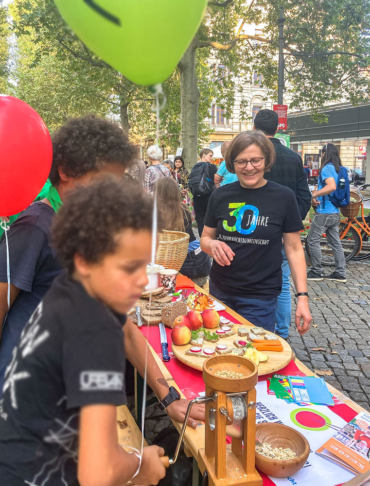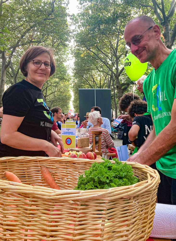 Alle Menschen an einen Tisch zu bringen, Vielfalt zu leben und in Dialog zu treten – darum ging es auch in diesem Jahr bei der Idee des Gastmahls für alle. Auch die VG Dresden war mit einem Tisch an der bunten Tafel beteiligt.