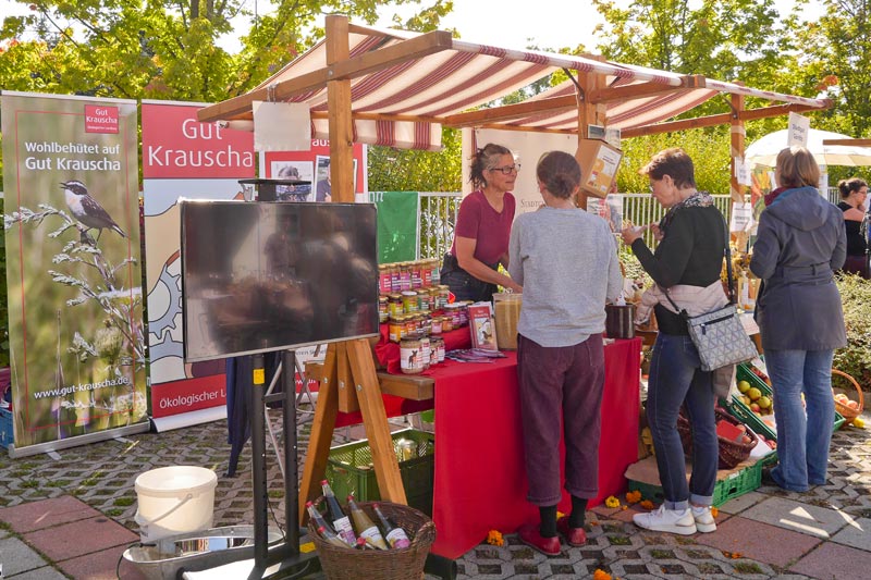 Mit dabei waren: Biogärtnerei Auenhof, Bio-Bauernhof Ines Franz, Demeter-Hof Mahlitzsch, Biokonditorei & Bäckerei Bucheckchen, Essig Schneider, Görlitzer Brotschmiede, kleepura, Gut-Krauscha-Handel e.K., Stadtgut Görlitz GmbH, Kanzleilehngut Halsbrücke, Aronia Original, Pfarrgut Taubenheim, Zaituna, Streuobstkelterei Gohla, der ADFC Dresden, Umweltzentrum Dresden und weitere.