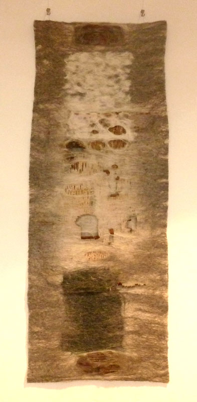Die Arbeit mit Wolle fasziniert mich sehr und ich bin immer wieder aufs Neue beeindruckt zu sehen, wie aus dem Rohmaterial Wolle ein Objekt entsteht. Technikkenntnisse und Wissen über verschiedene Wollarten und -sorten ermöglichen mir die Herstellung von feinen transparenten Objekten, wie Lampen und Leuchten ebenso wie die Herstellung von Bekleidung, Gefäßen, robusten Sitzkissen und Teppichen. Wolle ist zudem ein sehr gutes Material um künstlerisch kreativ sein zu können. Neben der Vielfalt an Farben, in der Wolle erhältlich ist, bietet das Material auch die Möglichkeit plastisch zu arbeiten, wie ich dies bei meinen Wandbildern getan habe.